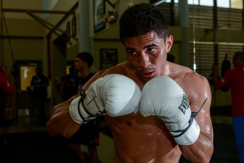 Pedraza, Cintrón y Lebrón entrenaron ante los medios en el gimnasio de boxeo Felix Pagán Pintor.